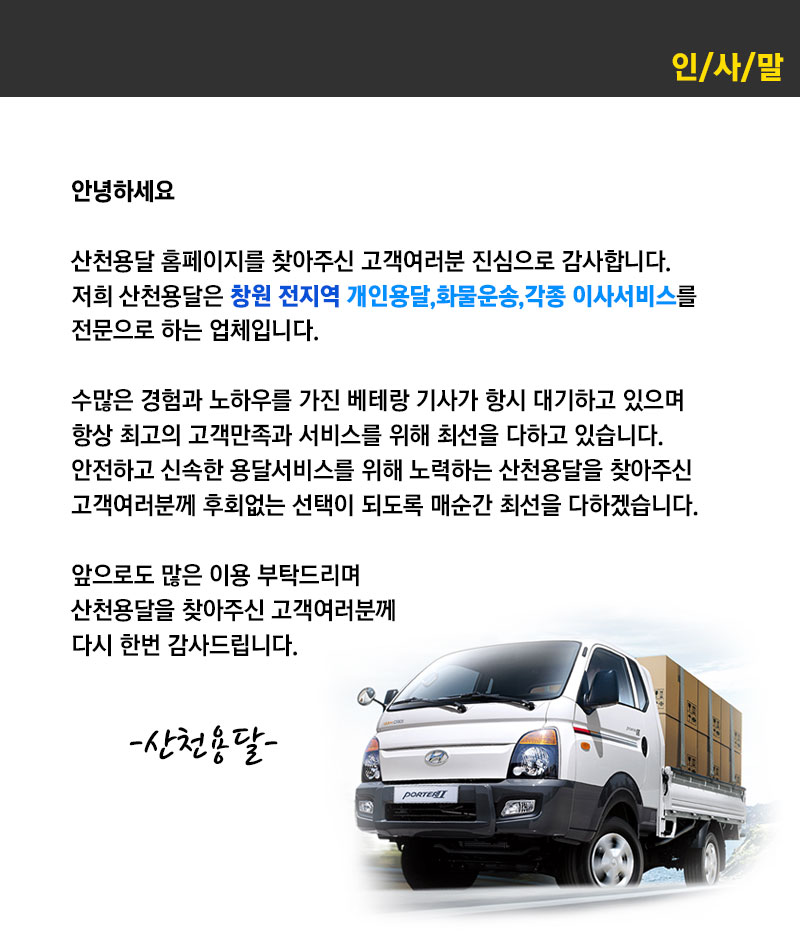 저희 산천용달은 창원 전지역 개인용달,화물운송,각종 이사서비스를